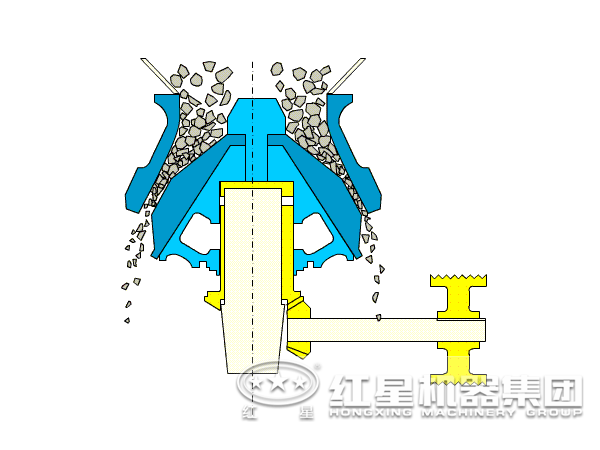 復(fù)合圓錐破碎機也是通過層壓式實現(xiàn)物料的破碎,該設(shè)備在正常作業(yè)狀態(tài)下和其他圓錐破碎機是一樣的,復(fù)合圓錐破碎機工作時,電動機啟動,偏心軸在傳動裝置的作用下做旋擺運動,破碎壁時而靠近時而偏離固裝在調(diào)整套上的軋白壁表面,這樣礦石會在破碎腔內(nèi)受到不斷的沖擊、擠壓及彎曲作用而實現(xiàn)礦石的破碎。